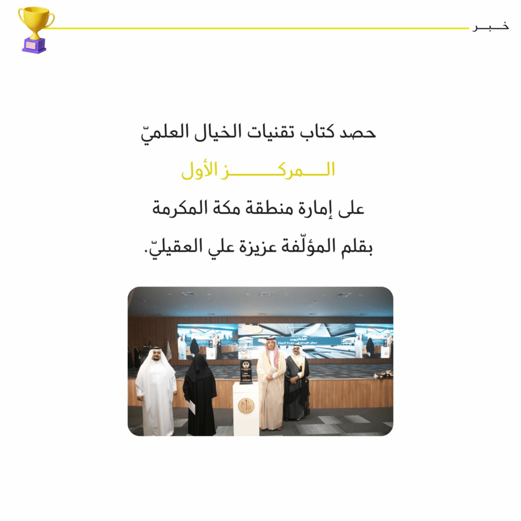 كما حاز كتاب{تقنيات الخيال العلميّ} على المركز الأول في جائزة جدة للإبداع.