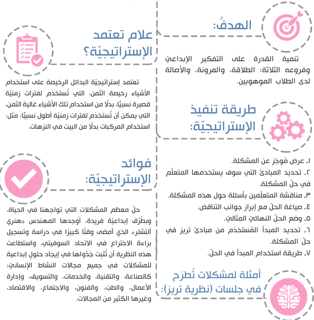 ورقة عمل إستراتيجيّات(نظرية تريز) حلّ المشكلات بطُرُقٍ إبداعيّة